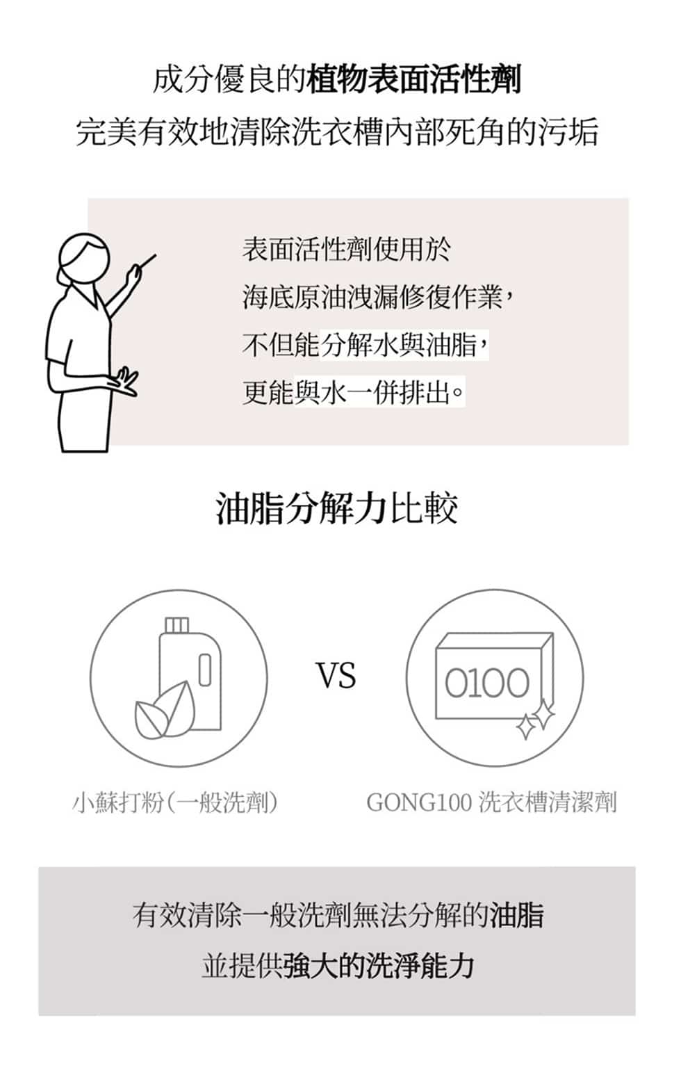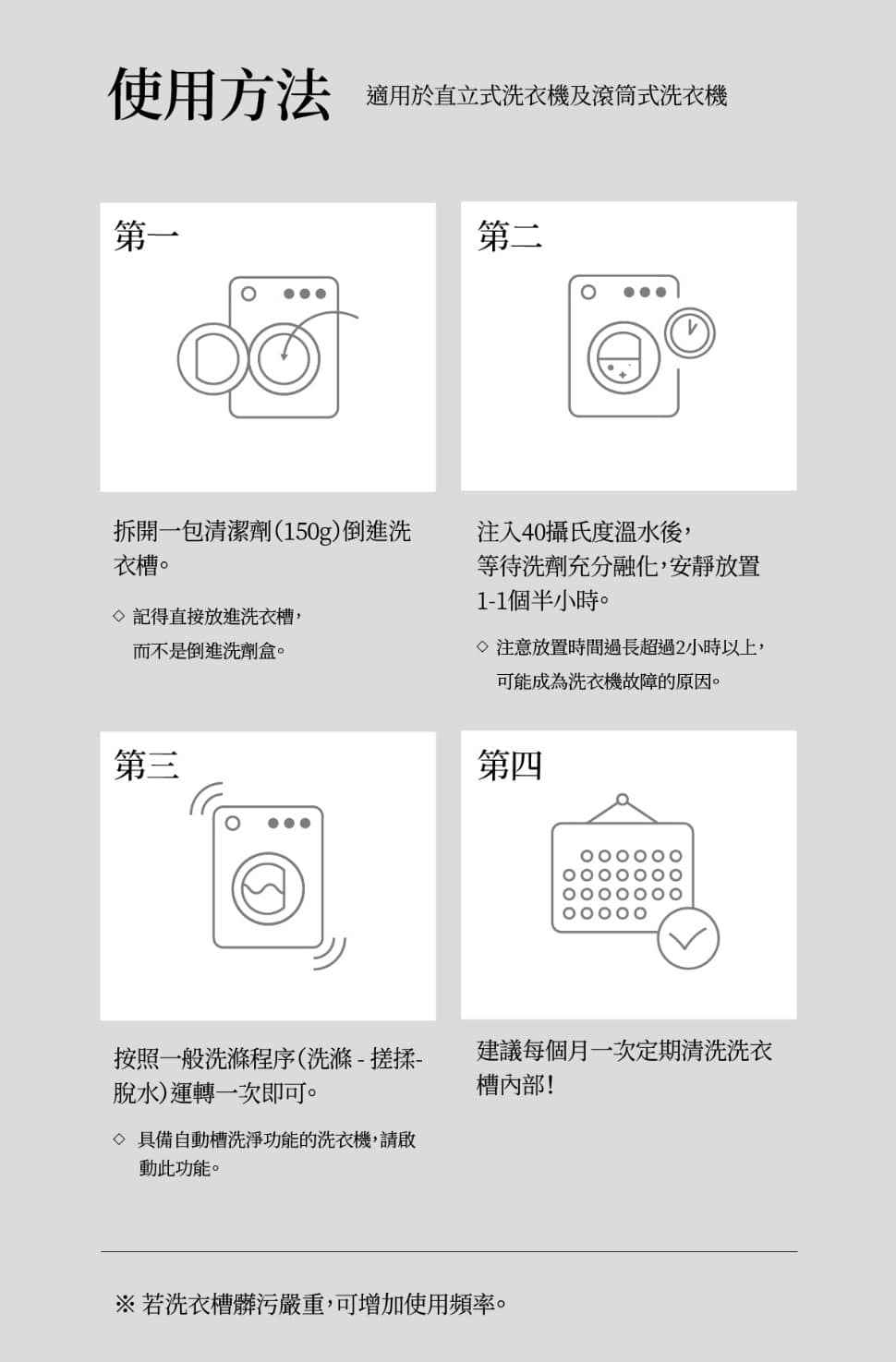 - 輕鬆有助去除洗衣槽內的污漬、異味、霉菌