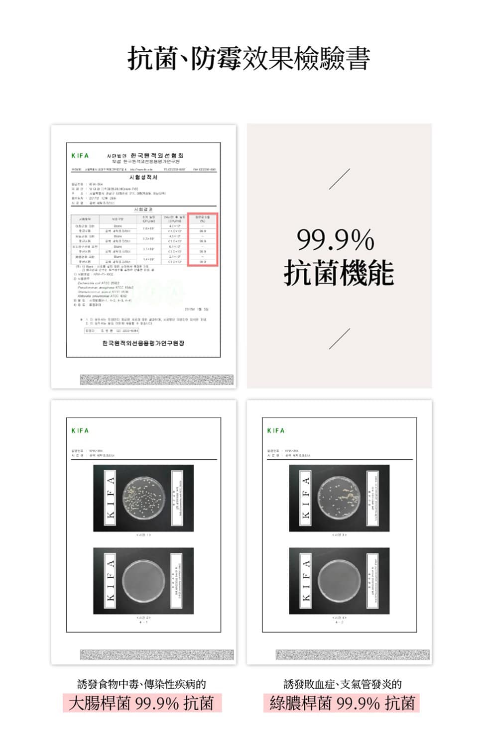 - 有助抑制細菌滋生,除菌率高達 99.9%