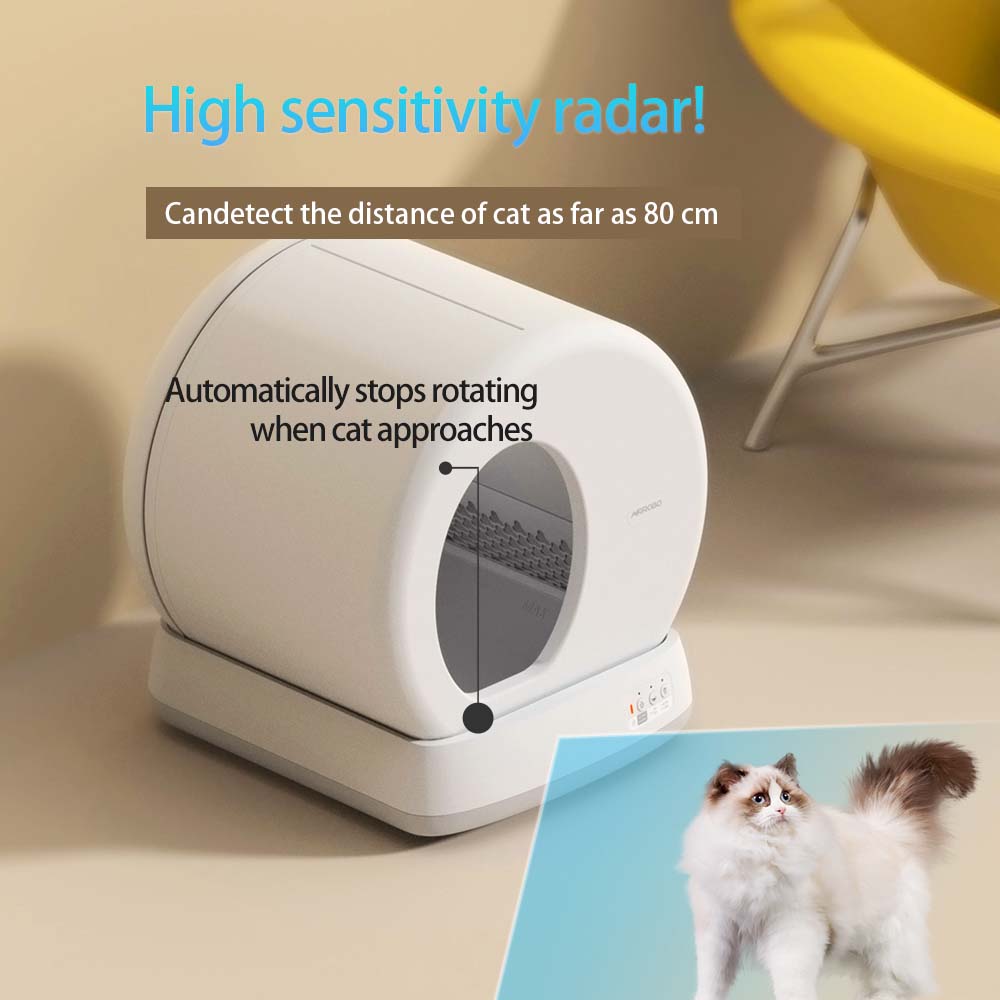 - 創新結構,專利防夾,雙重安全保障,能做到永不夾貓,擁有 13 重黑科技安全防護,內置毫米波雷達感應器 (機器正前方 120 度,最遠 80cm 的超大範圍保護區域),當貓咪靠近時艙內即可停止工作