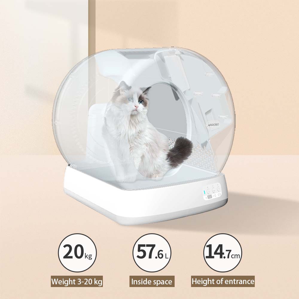 - 超大空間,不用擔心大胖主子憋屈,內倉 57.6L 超大如廁空間,整機占地面積僅 0.27 平方