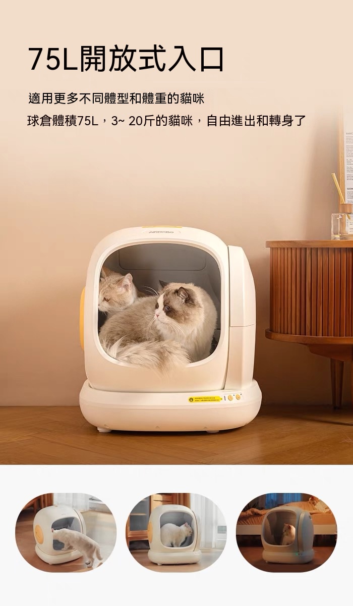 - 75L 內部超大空間,空間更開放,貓咪舒心用