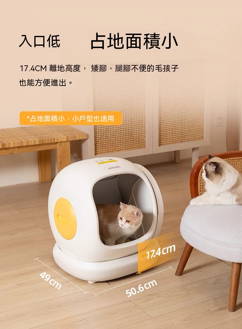 - 17.4cm 超低入口,矮腳貓、幼貓、肥貓都可以輕鬆使用