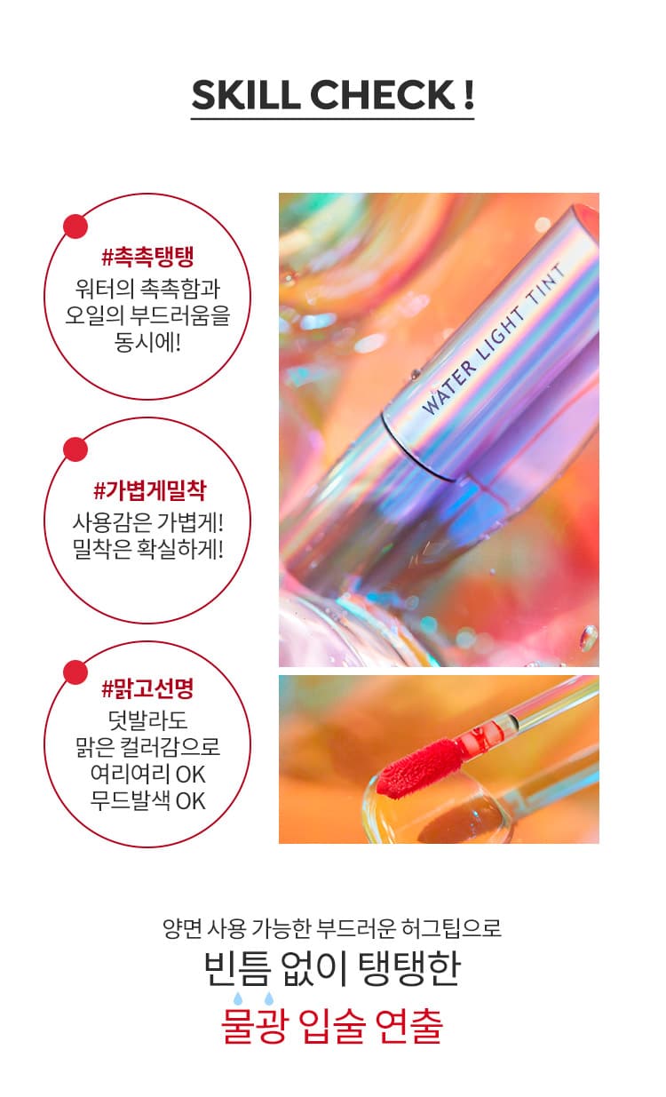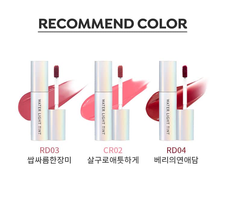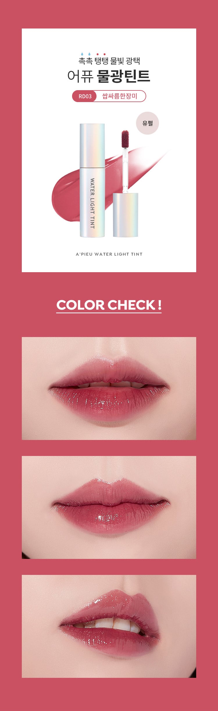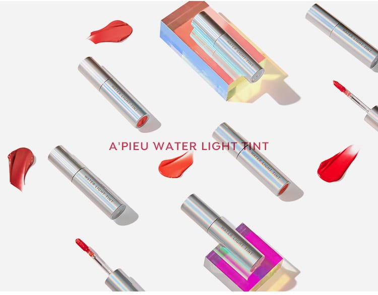 - A’PIEU WATER LIGHT TINT 彩虹唇彩薄塗重塗都有不一樣的美感,配襯任何膚色、膚質亦盡顯氣質