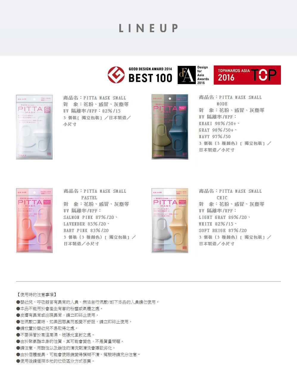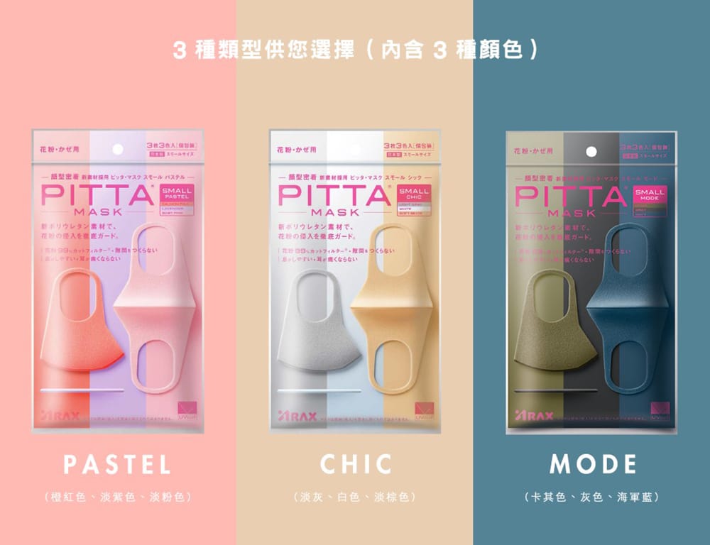 - PITTA MASK SMALL MODE (卡其色、灰色、海軍藍色)