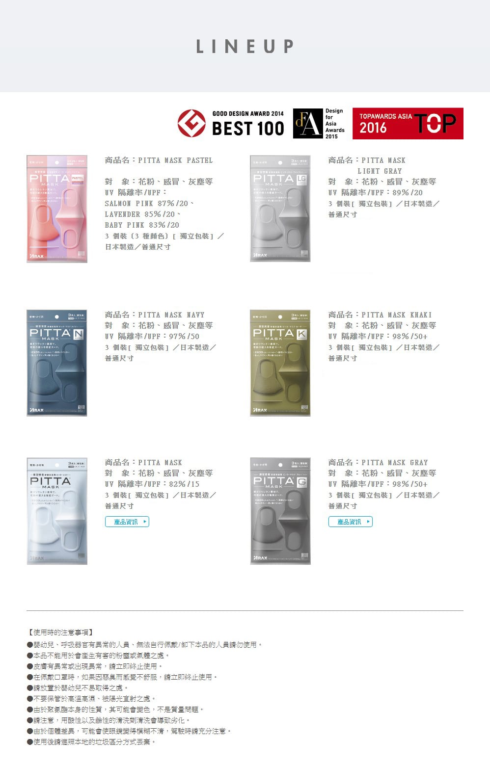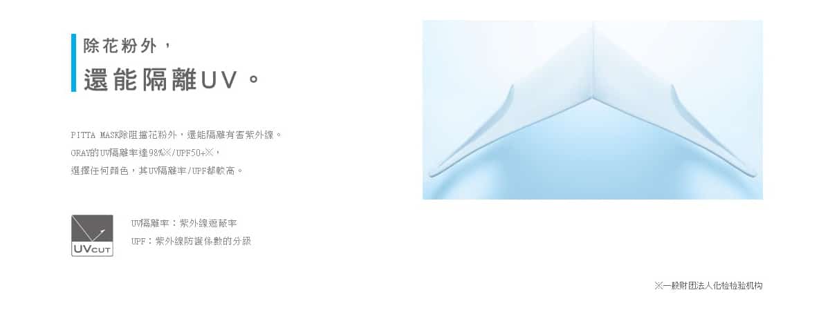 - 採用緊貼臉型素材,PITTA MASK 以新聚氨酯素材,徹底隔離花粉入侵。