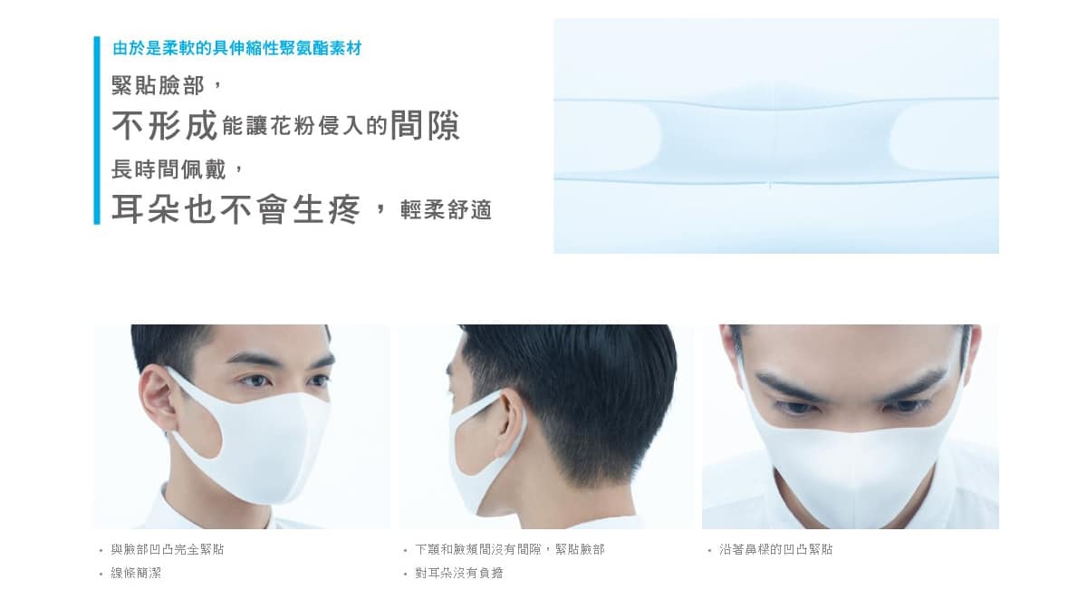 - 緊貼臉部,不形成能讓花粉侵入的間隙。