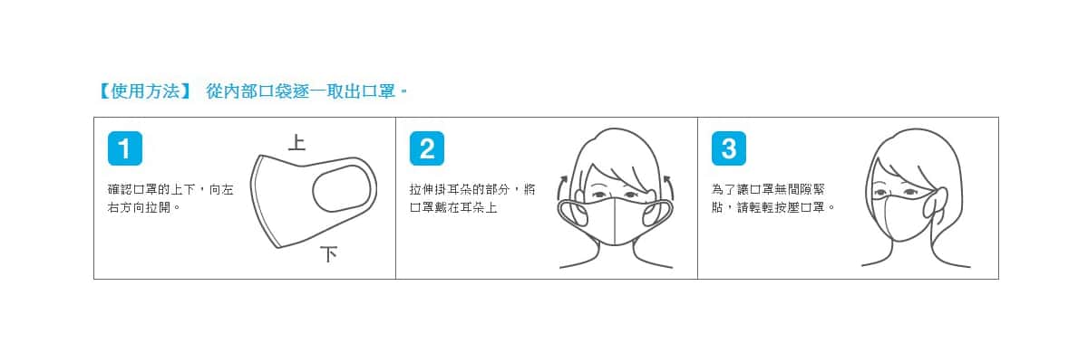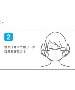 - 拉伸掛耳朵的部分,將口罩戴在耳朵上。