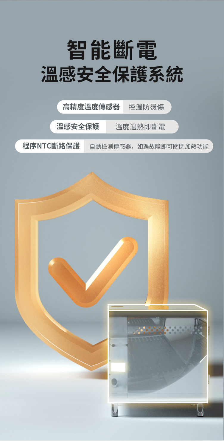 • 超過安全溫度即停止運行