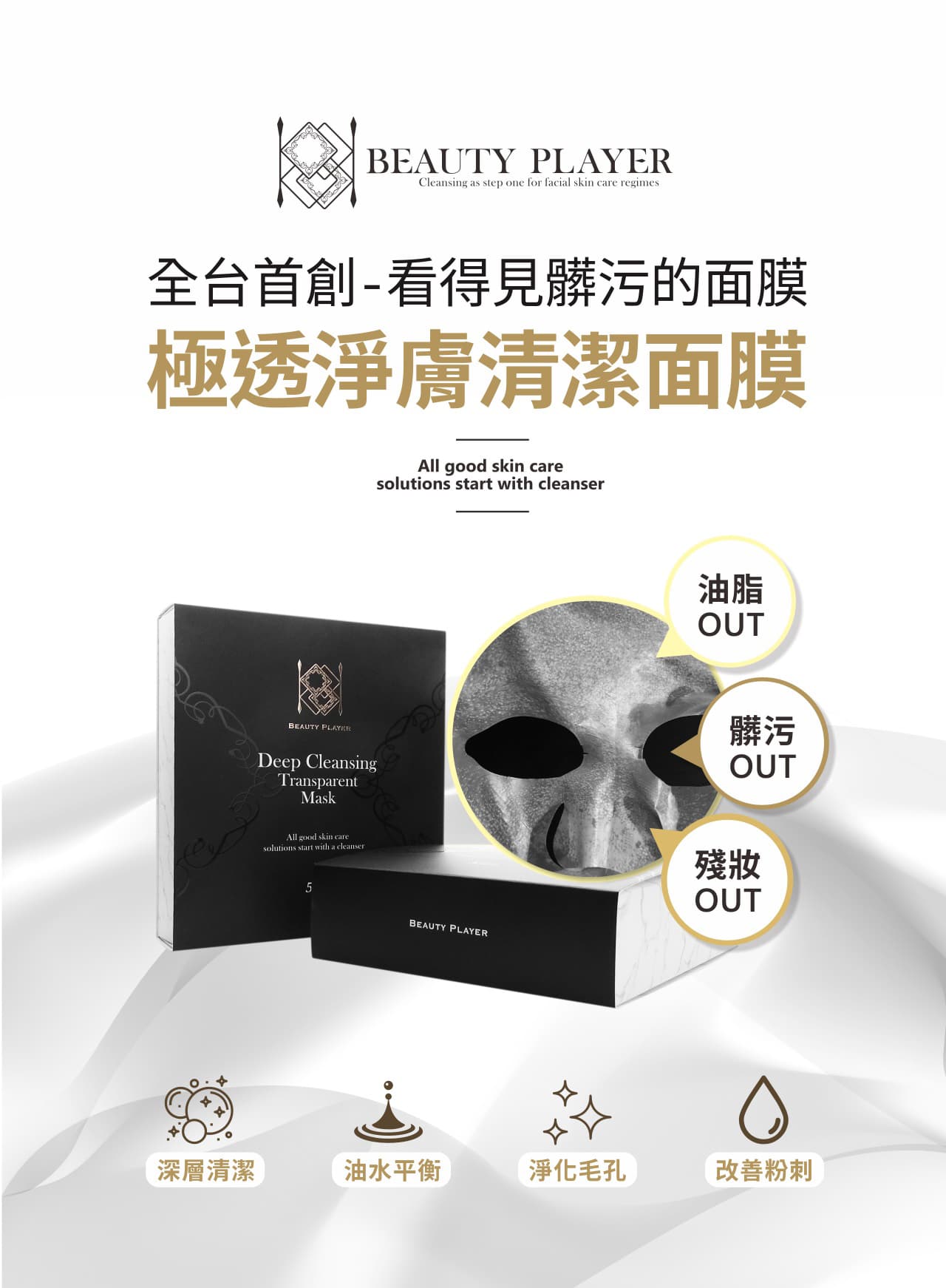- 含天然膠原淨膚因子,具有極佳深層清潔能力,去污分解角質且深層吸附毛孔內的髒污油脂,讓肌膚深呼吸