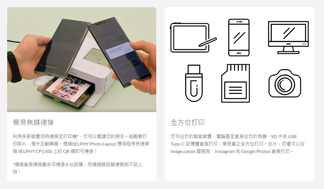- 你可直接從多種設備 (例如:智能手機、電腦,甚至直接從您的相機) 進行打印