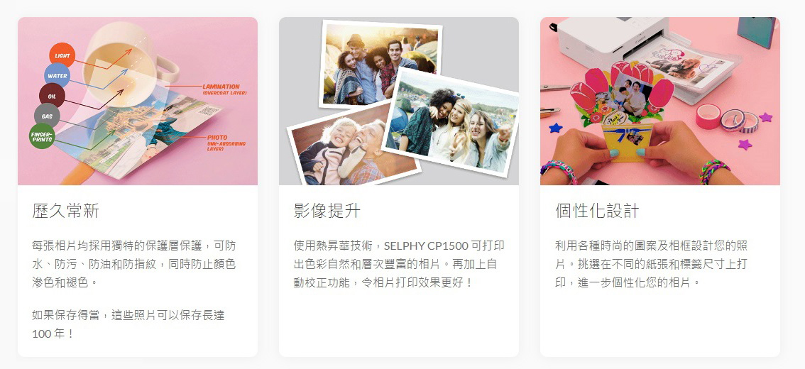 - 利用 SELPHY CP1500 設計和美化您的圖像並打印出不同尺寸的持久照片