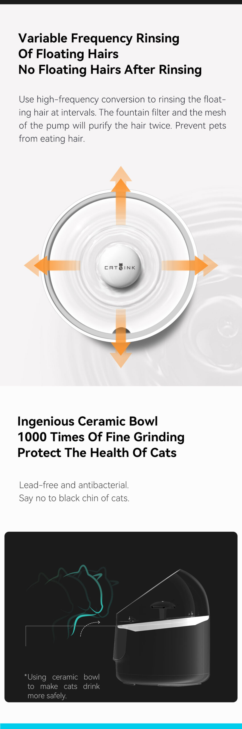 - 匠心陶瓷盤,1000 次精磨打造,抑菌更健康,創新將智慧飲水機和陶瓷盤結合起來,匠心精磨,無鉛抑菌方便清洗,貓咪長期使用也不會黑下巴