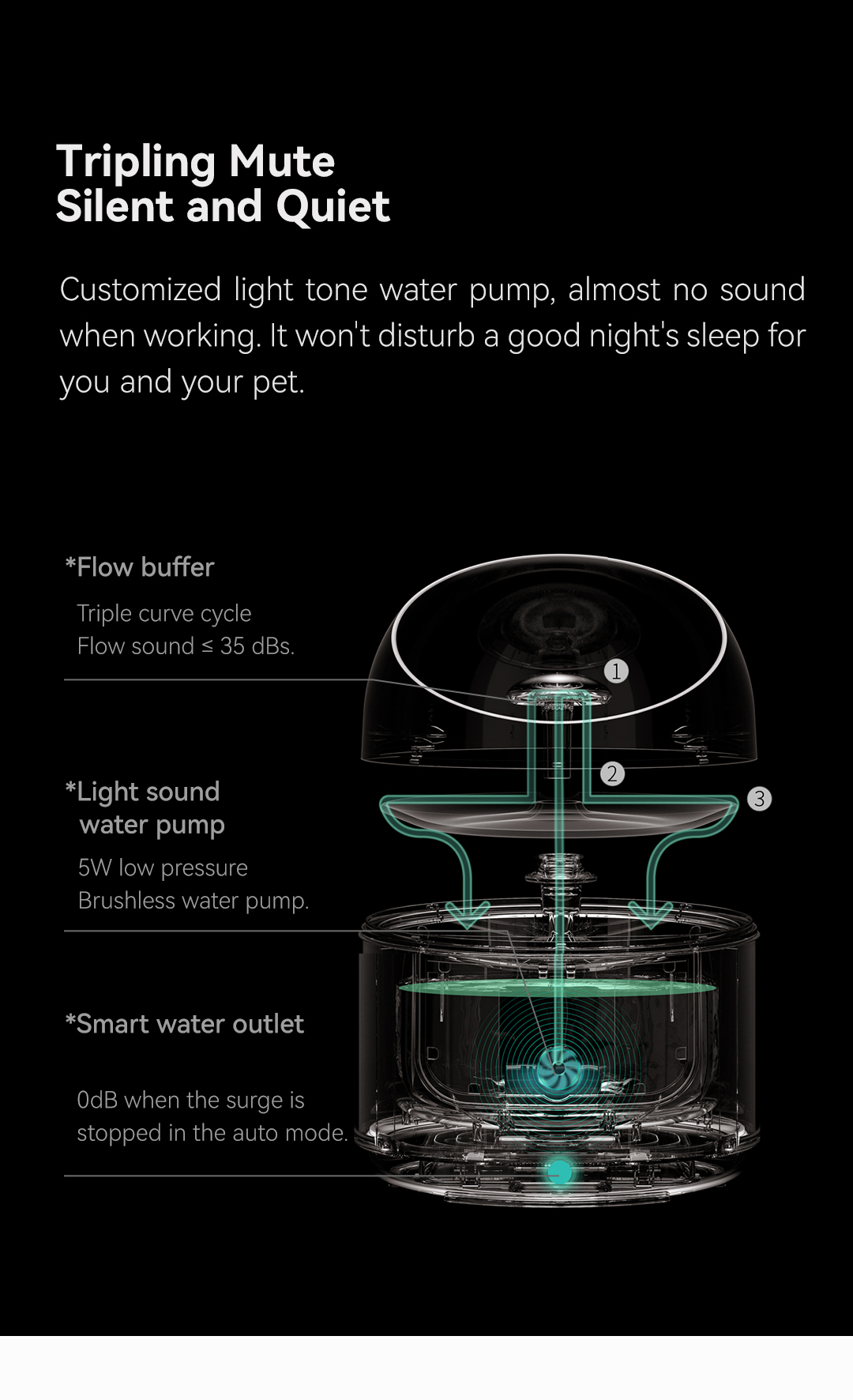 - 重降噪,無聲不擾,歲月靜好,定製版輕音水泵,工作時運行聲音細弱絲雨,不打擾你和貓咪的深夜好眠
