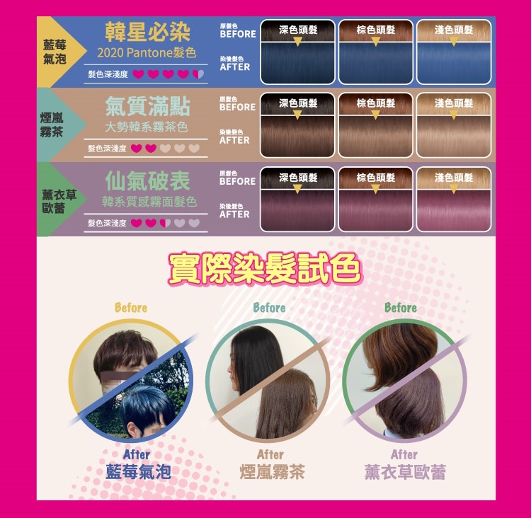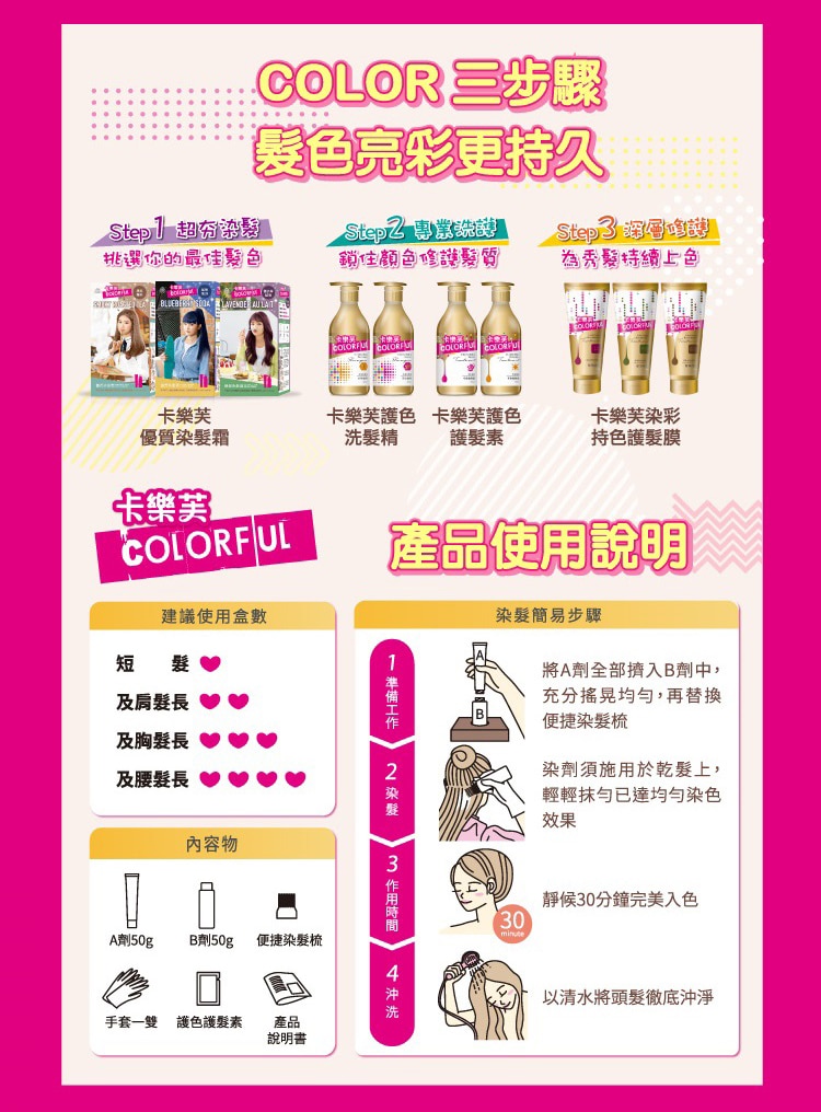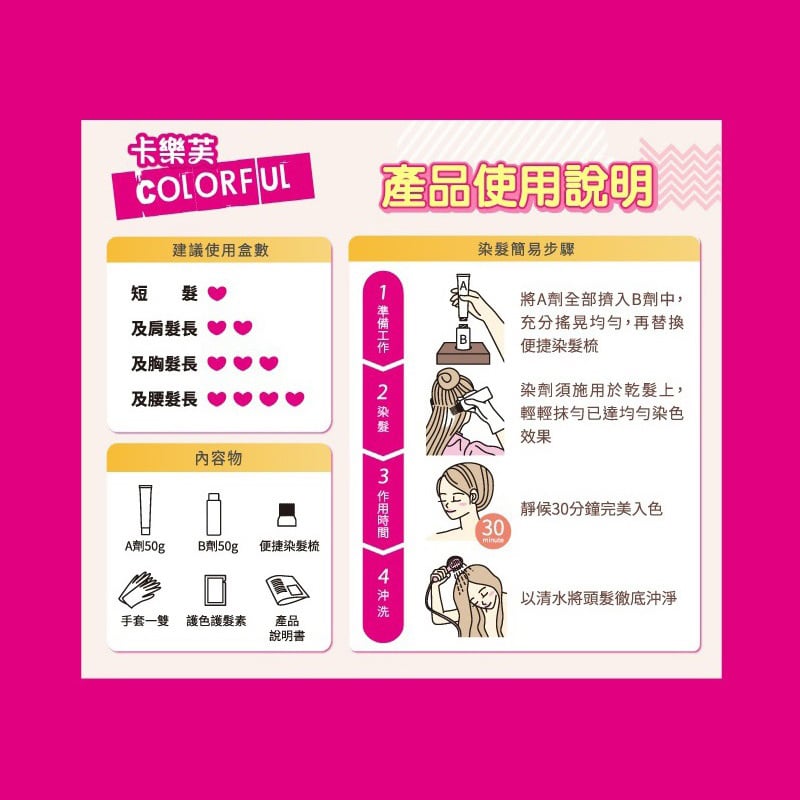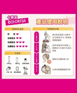- 染髮可能造成極少部份人皮膚過敏,染髮前 48 小時請依盒內說明書作皮膚敏感性測試