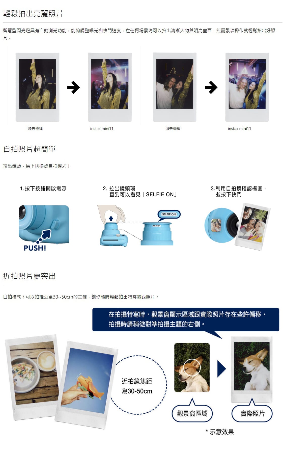 - 相紙出片:拍攝後自動吐出