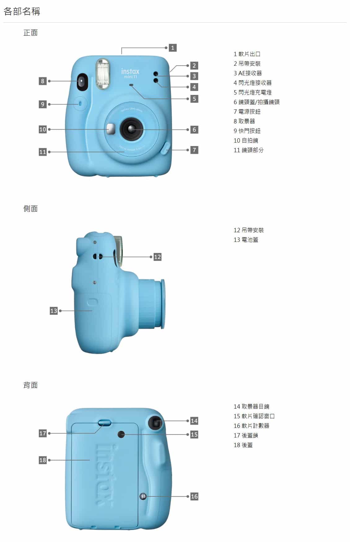 - 重量:293g (不含電池、相機帶、菲林)