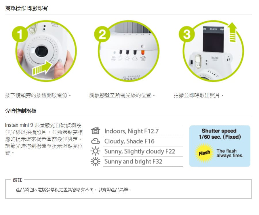 - 使用菲林:Fujifilm Instax mini 彩色菲林