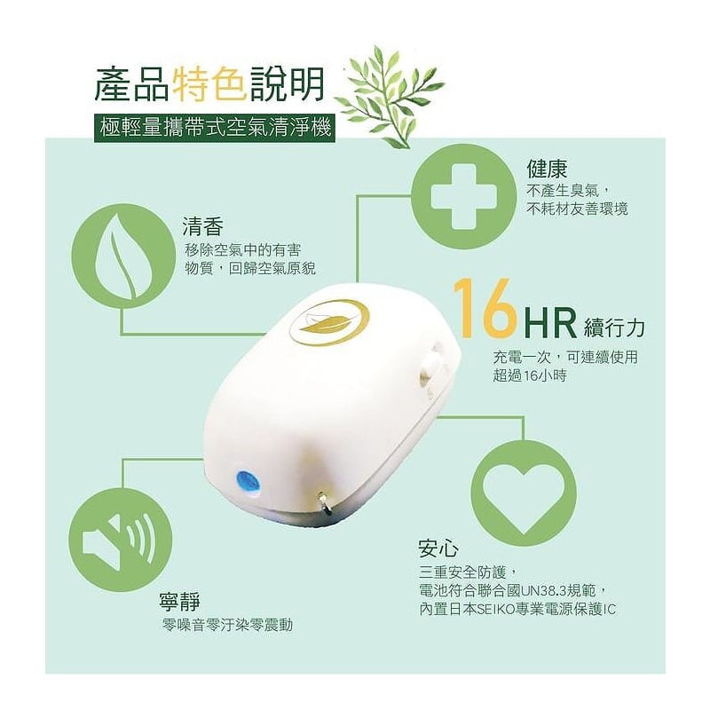 用上與 3M 清淨機和 TOYOTA 車裝清淨機同類型的負離子機芯