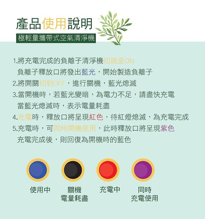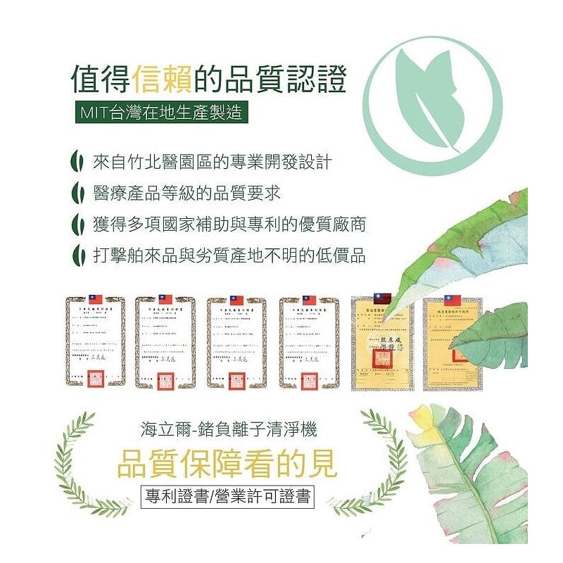 - 負離子產生量:約 2000 萬個
