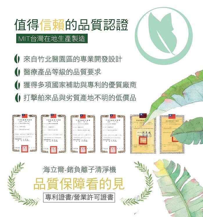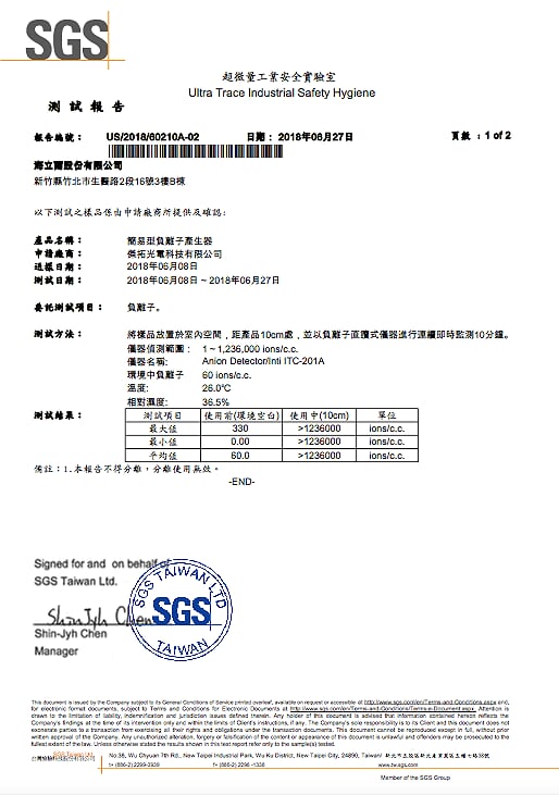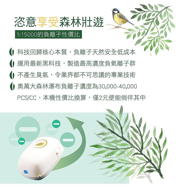 業界標竿,每秒鍾釋放 2000 萬個負離子