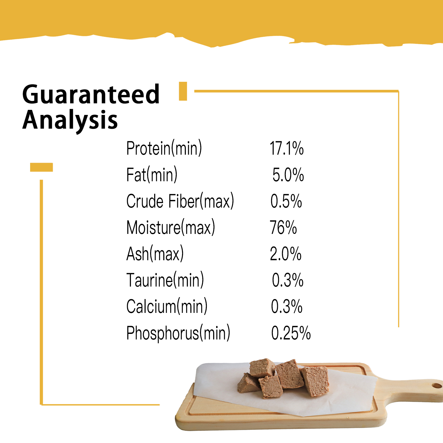 - 濕物質粗蛋白高達 17% (一般罐頭為 10% 左右)