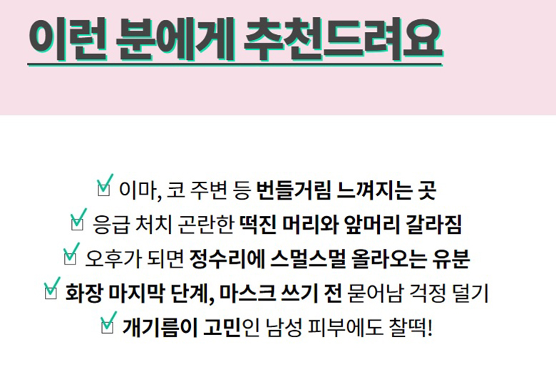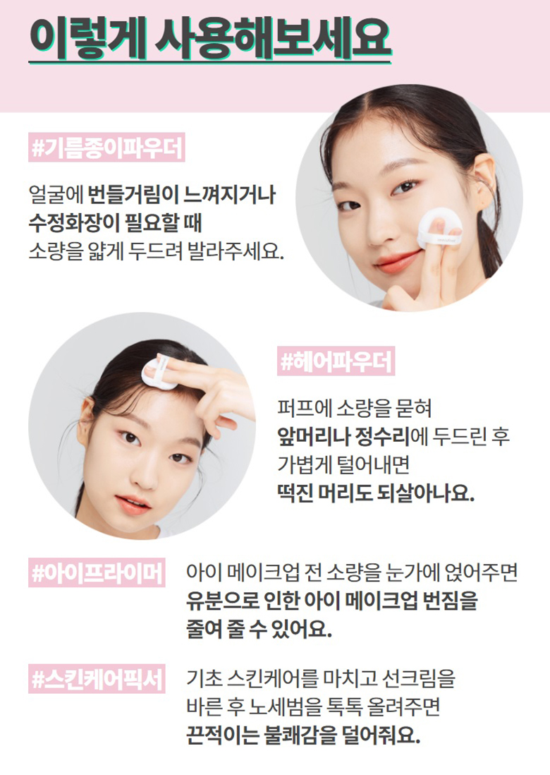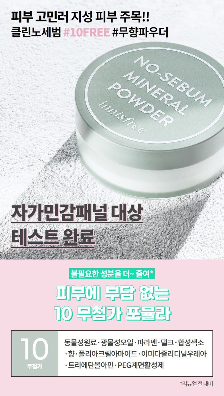 - 濟州天然礦物粉及薄荷成分有效平衡肌膚油水分。含濟州天然礦物粉及薄荷成分有效吸走油脂,控制肌症油水分平衡用後感清爽