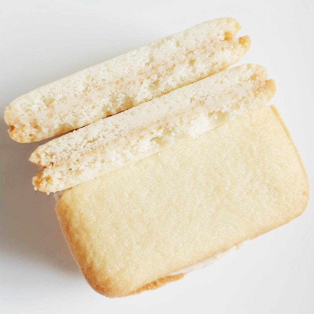- 提升濃度的雲呢拿 CREAM 味道,夾在兩片鬆脆的曲奇餅乾之內,正方形的設計,方便易入口