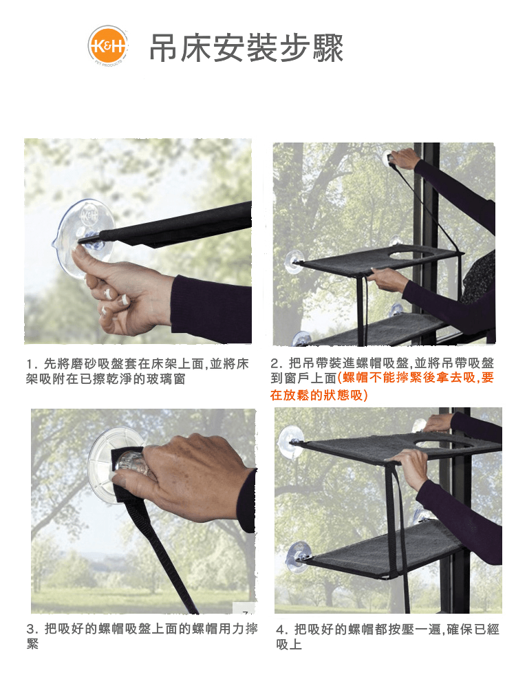 - 建議每一個月移除吸盤,清潔窗戶,再從新安裝,以保持吸盤的承載力