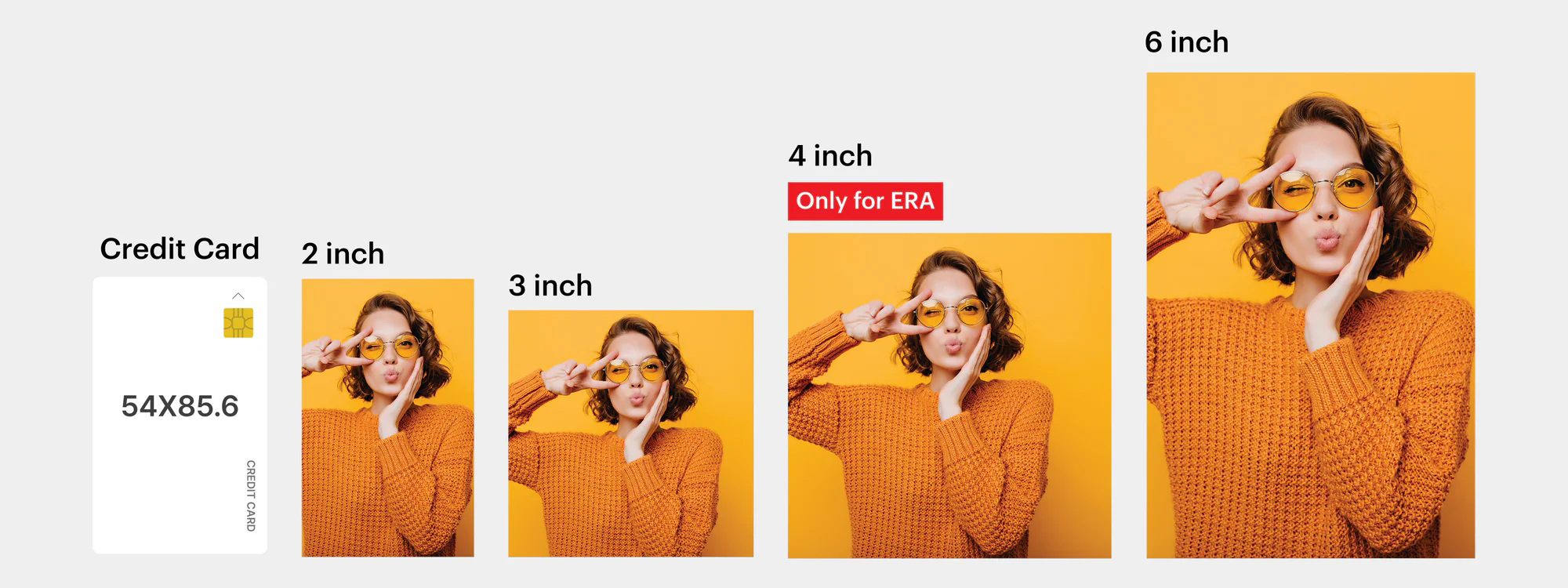 - 相片尺寸:2.1 吋 X 3.4 吋 (信用卡大小)