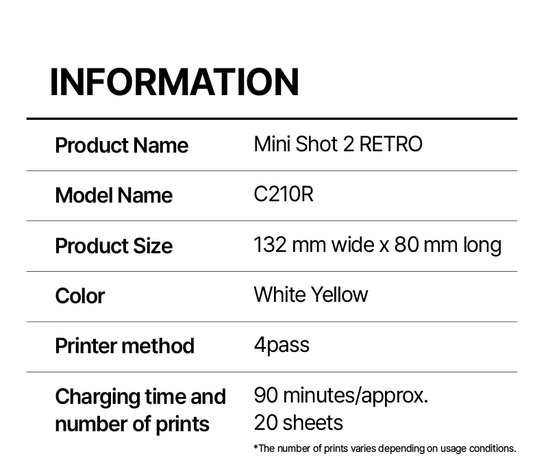 - 充電時間和列印數量:90 分鐘約 20 張