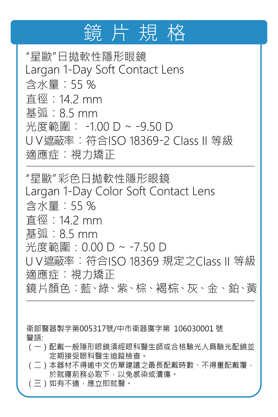 - 許可證字號:衛部醫器製字第 005317 號