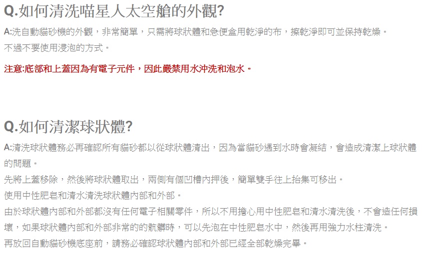 - 球狀體內部:高度 38cm ~ 43cm (高度取決於貓砂量的多寡) x 寬度 51cm x 深度 51cm