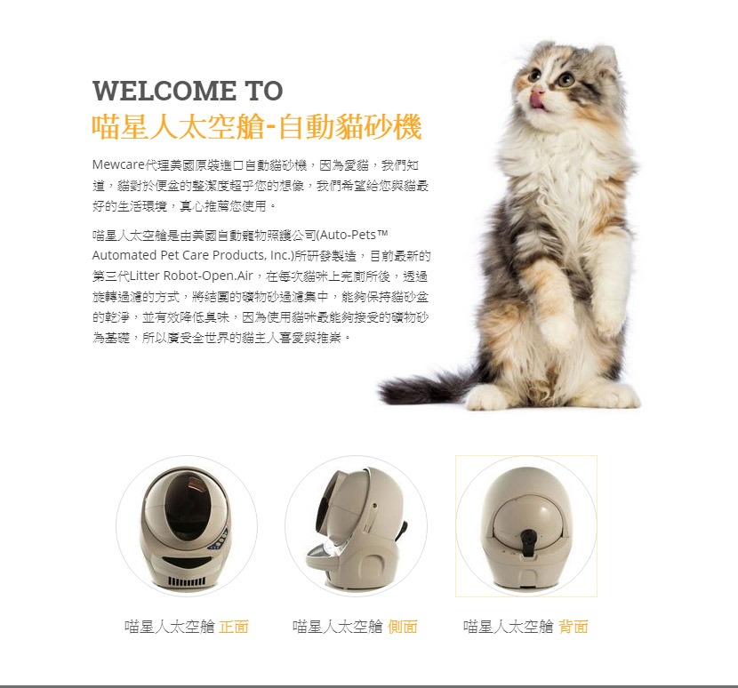 - 喵星人太空艙是一個全自動貓砂機。它的專利貓砂清潔系統將結團貓砂與乾淨的貓砂自動分開,所以您永遠不必再鏟貓砂