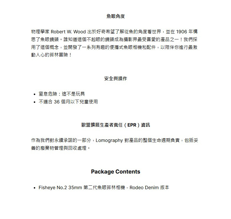 LOMOGRAPHY FISHEYE NO.2 35mm 第二代魚眼菲林相機 (RODEO DENIM 版本)