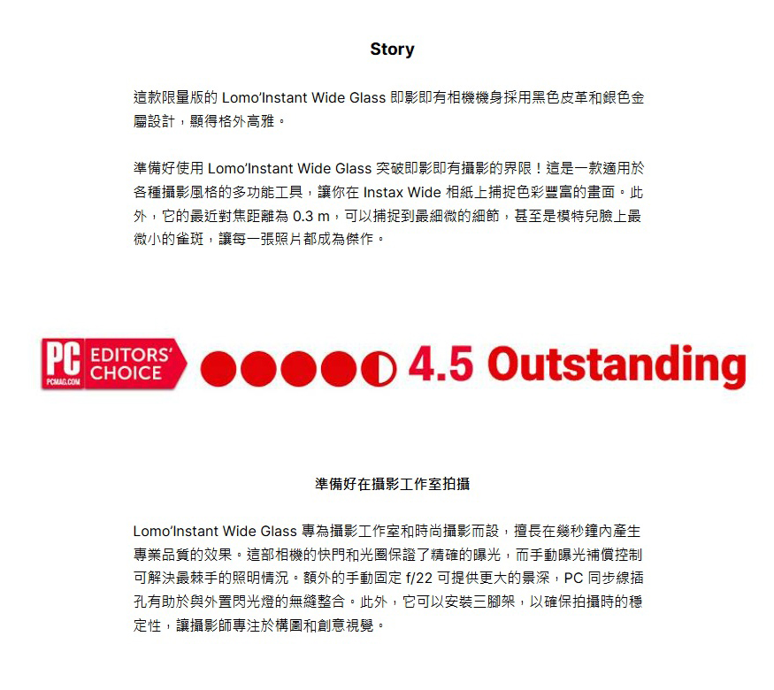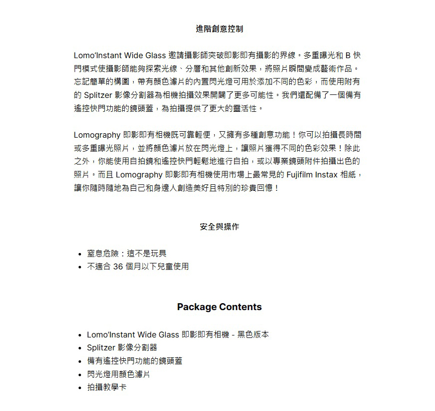 - 使用地球上最清晰銳利的即影即有相機來拓寬你的世界!這部相機採用多層鍍膜玻璃鏡頭,可在 Instax Wide 相紙上拍攝更清晰、更色彩豐富的畫面,讓你的世界更加廣闊!