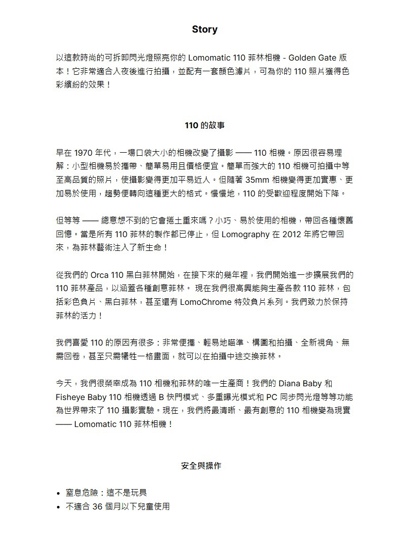 • 可拆卸的 LOMOMATIC 110 閃光燈