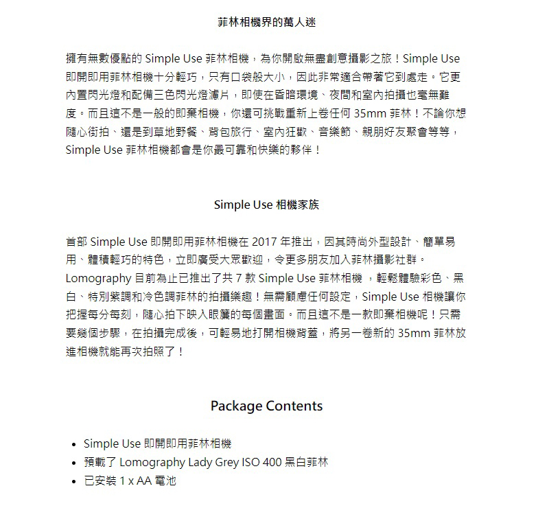 LOMOGRAPHY SIMPLE USE 即開即用菲林相機 (LOMOGRAPHY 黑白菲林版本) (27 張底片)