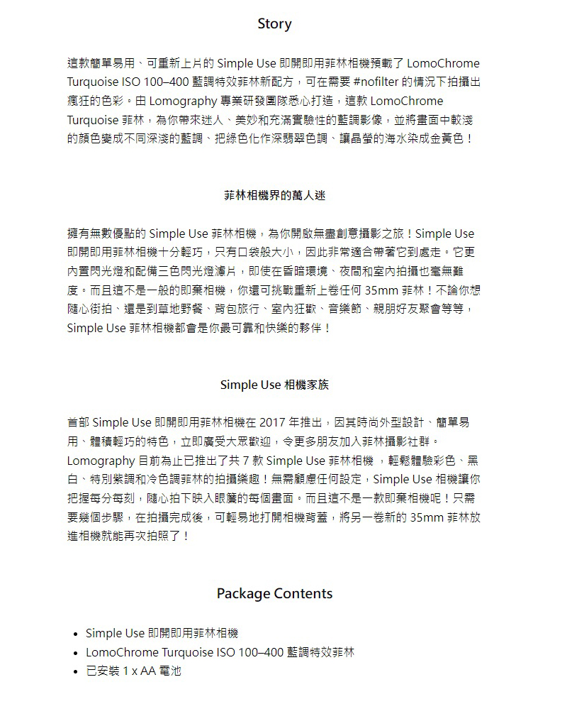 LOMOGRAPHY SIMPLE USE 即開即用菲林相機 (LOMOCHROME TURQUOISE 藍調特效菲林版本) (27 張底片)