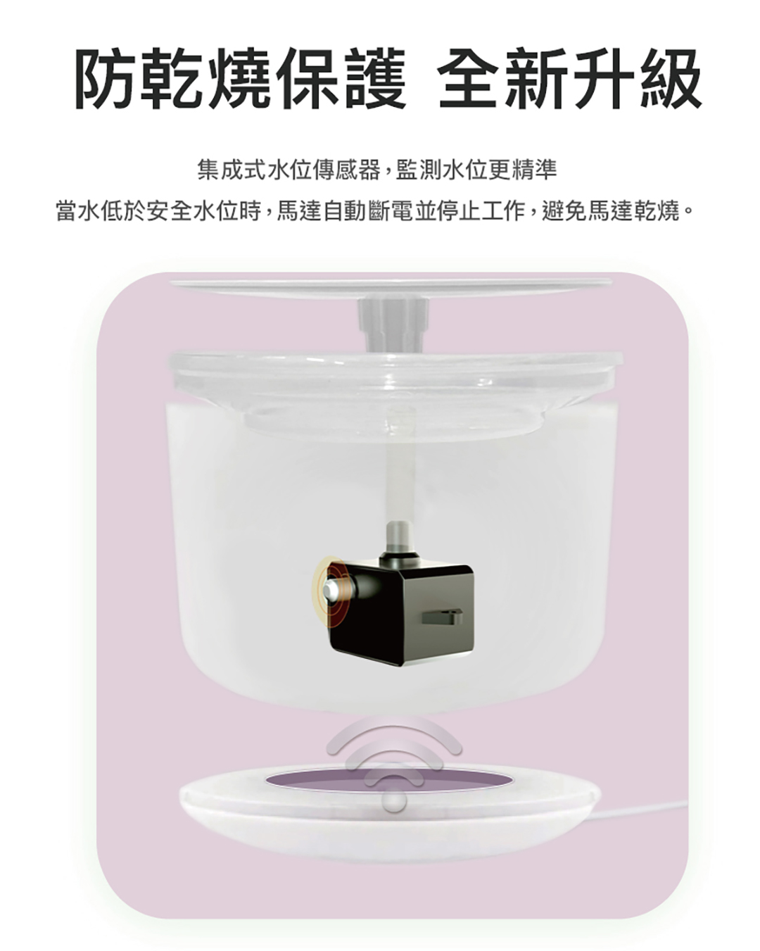 - 寵物飲水機水泵需要的能量遠小於手機充電,無線水泵是安全的,請放心使用