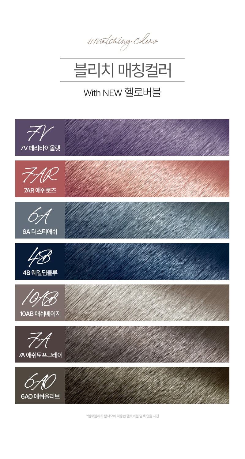 | 顏色 | 3NT DARK CHOCO, 4B WHALE DEEP BLUE, 5A DARK ASH, 6A DUSTY ASH, 6AO ASH OLIVE, 6N CHOCO BROWN, 7A ASH TAUPE GRAY, 7AR ASH ROSE, 7K ASH KHAKI BROWN, 7V PERI VIOLET, 8MB MATT BROWN, 10AB ASH BEIGE |