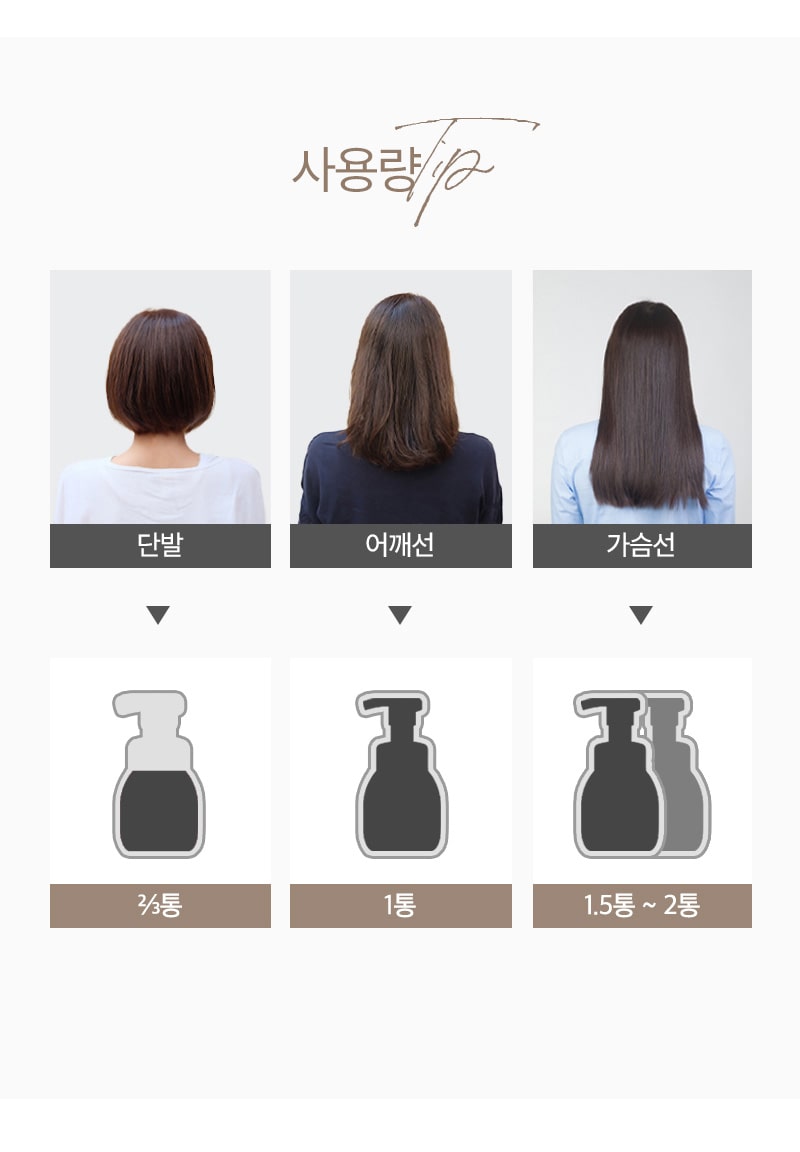 - 及胸長髮使用量:1 瓶 + 1/2 – 2 瓶