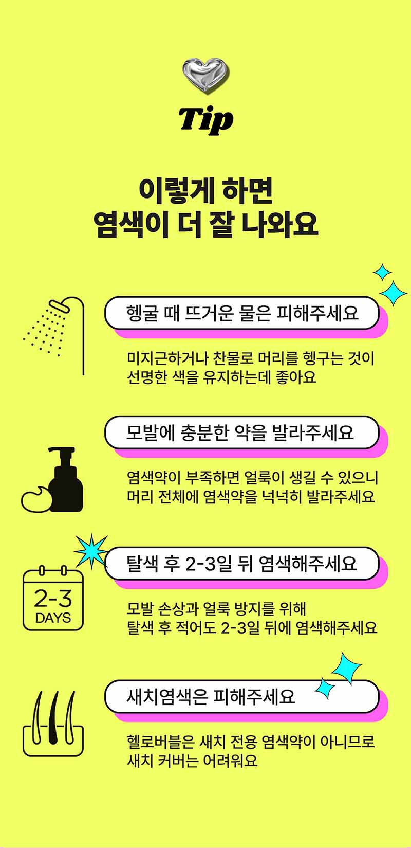 - 為了避免頭髮及頭皮受損,請在漂髮後至少 2-3 天再染髮