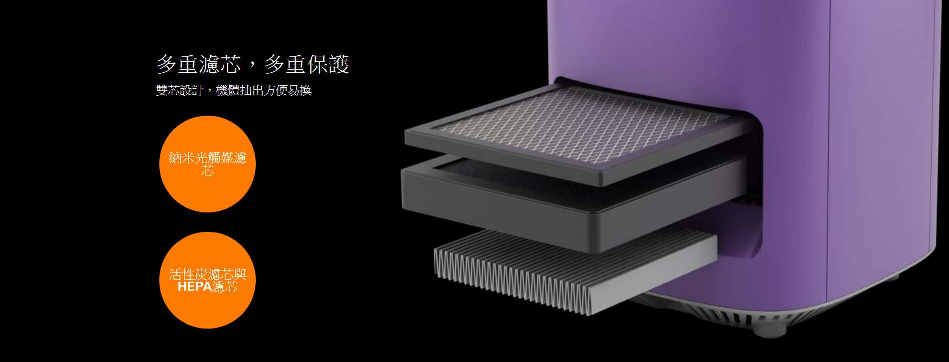 - HEPA 濾芯可長達使用 3 個月