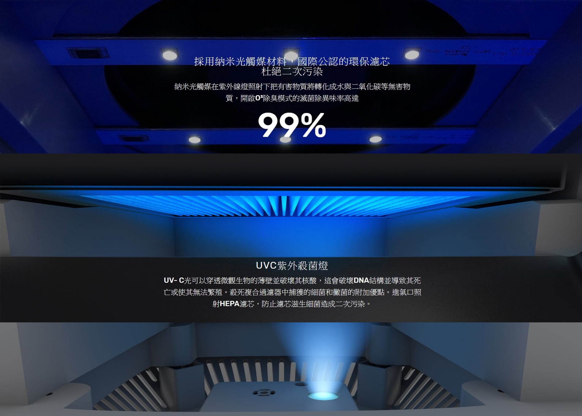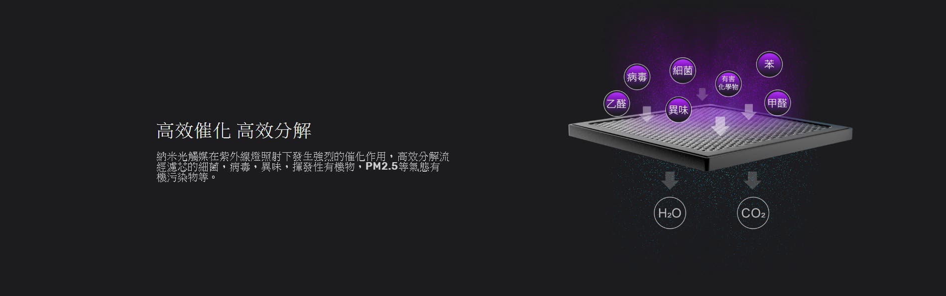 - 納米光觸媒濾芯可長達使用一年