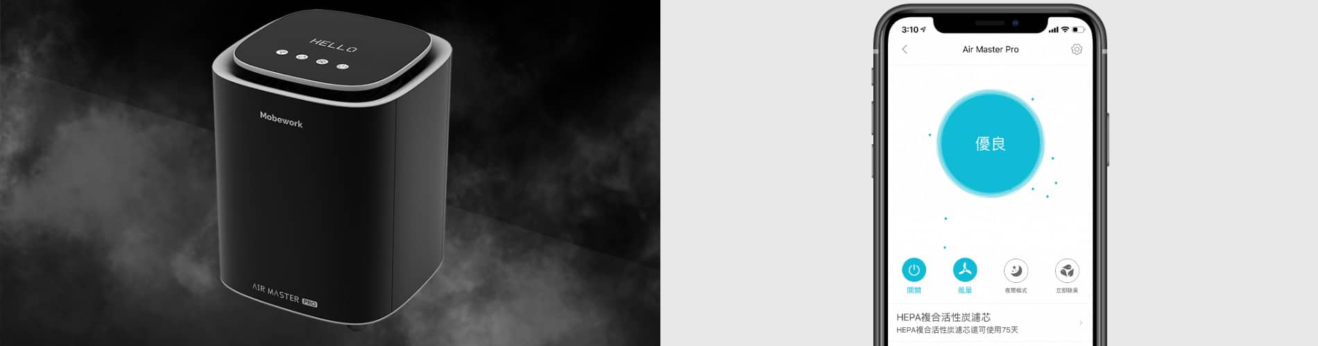 - 全球第一台集大成於一身的 MOBEWORK AIR MASTER PRO 雷達空氣淨化器