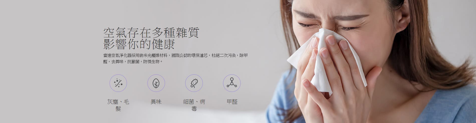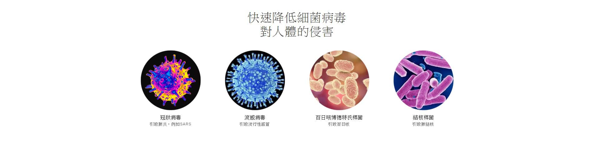 - 空氣中充滿數萬種細菌,令到肺炎傳播加速。鼻敏感嚴重、哮喘病頻發、咽喉發炎、肺結核、百日咳等影響家庭生活健康