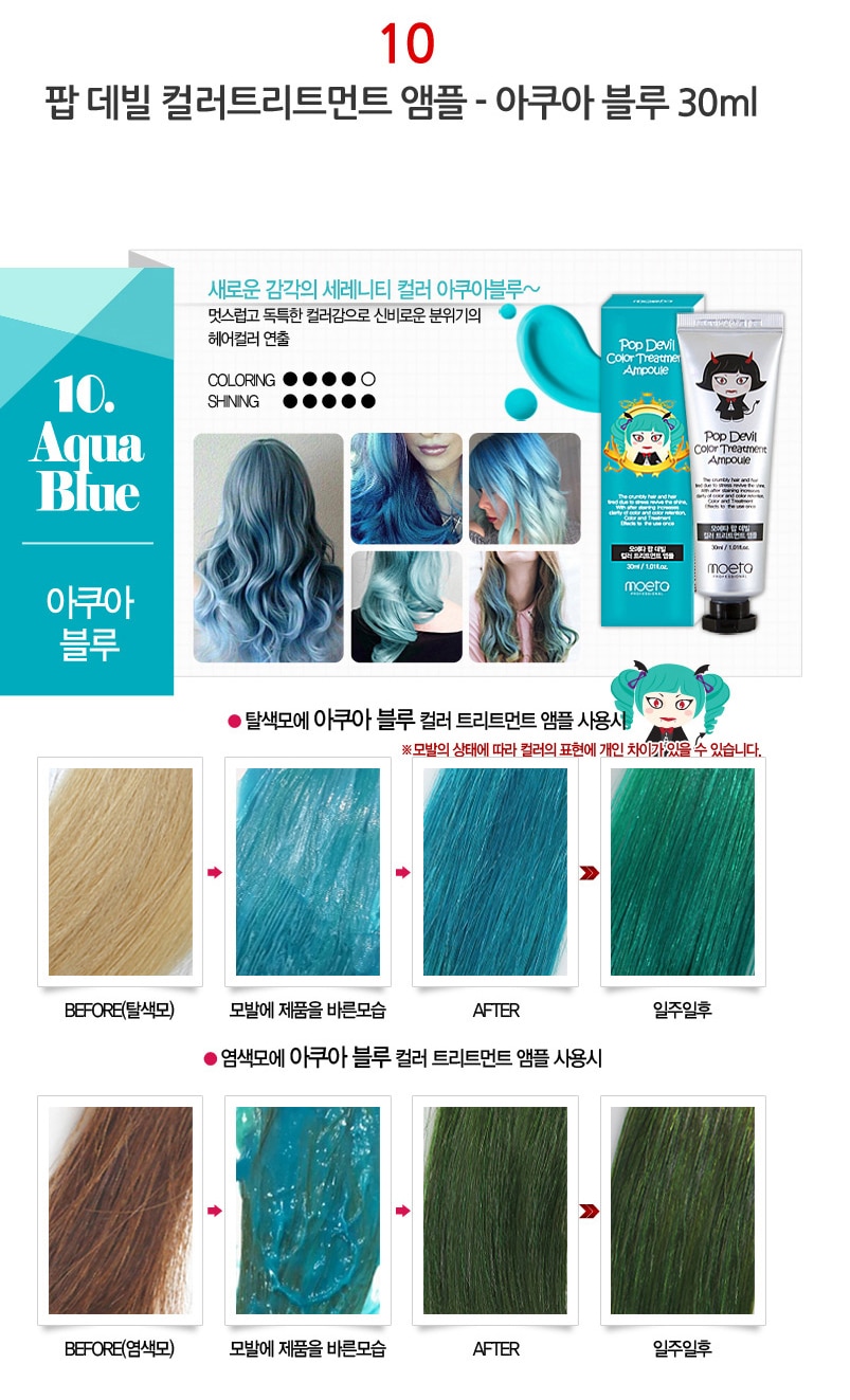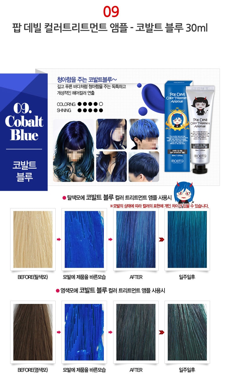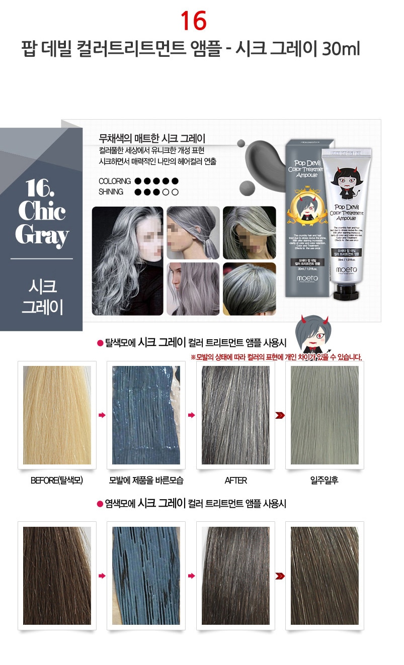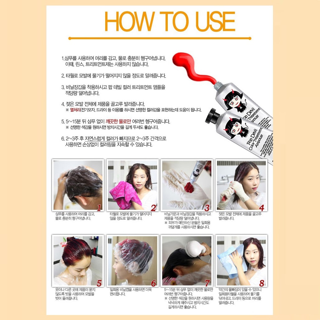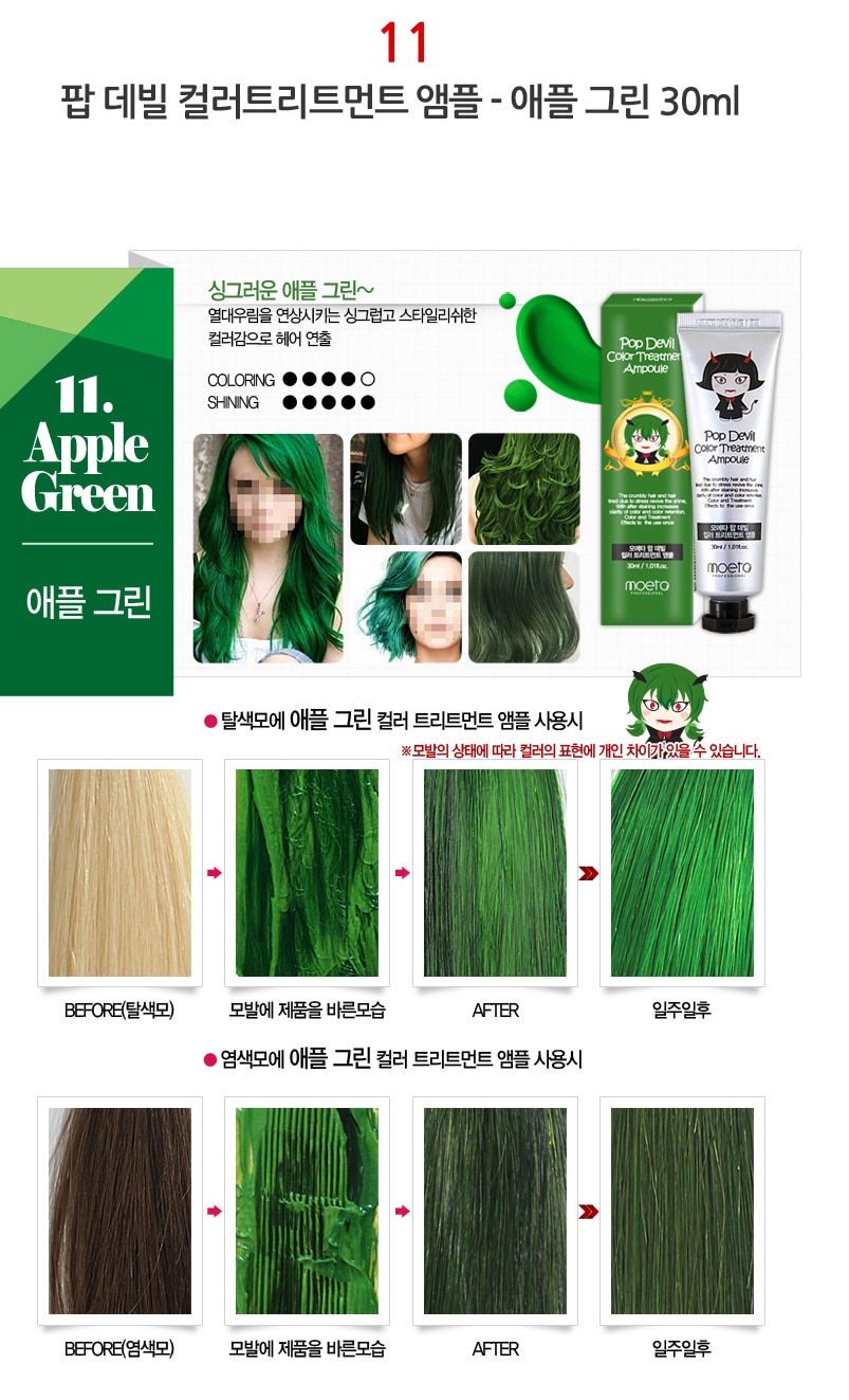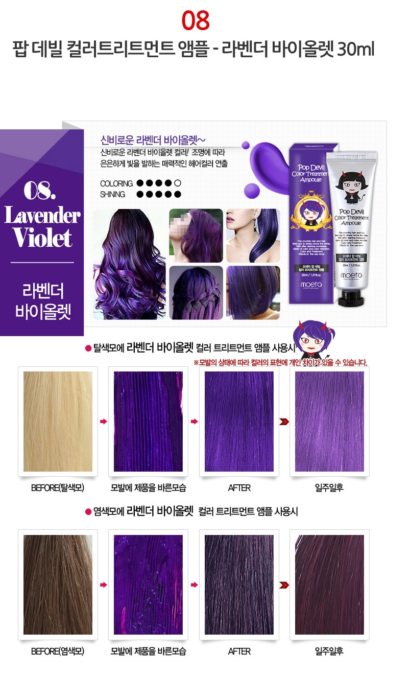 - MOETA POP DEVIL COLOR TREATMENT AMPOULE 魔鬼焗油染髮膏有護髮功能,令頭髮有柔順效果,髮色明顯能維持大約 2 – 3 個星期