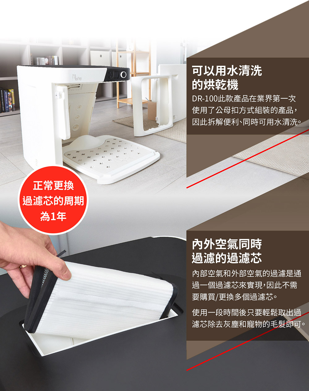 • 可用水清洗