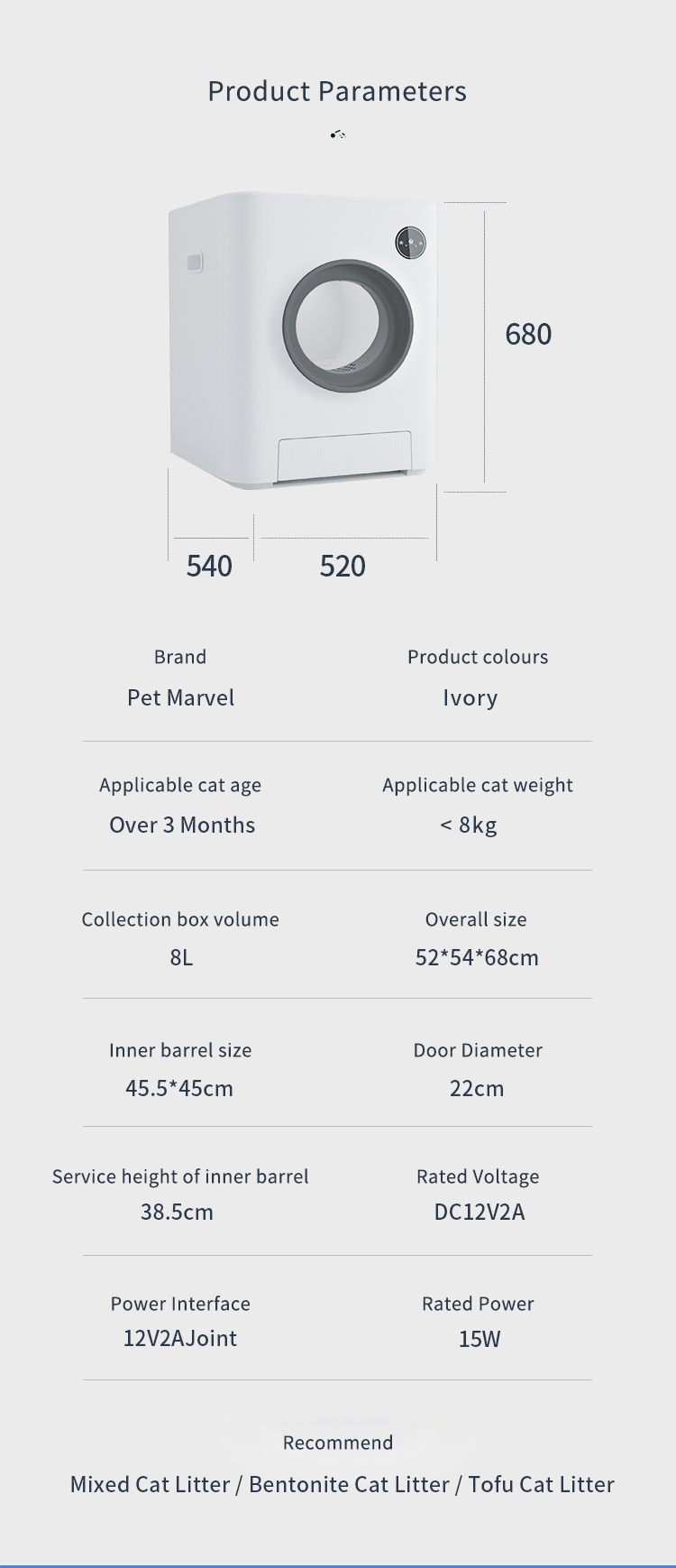 - 相容各種貓砂,膨潤土、豆腐、混合砂,不改變平時養貓習慣