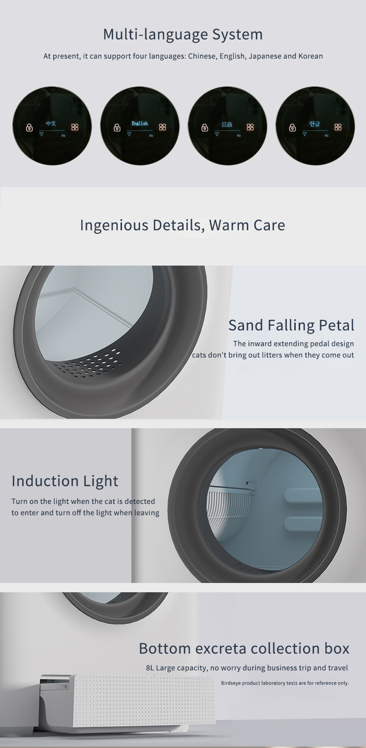 - 第三重防護:50cm 動態感應,檢測到貓咪在洞外或艙內活動立即停止運行,杜絕一切不安全可能